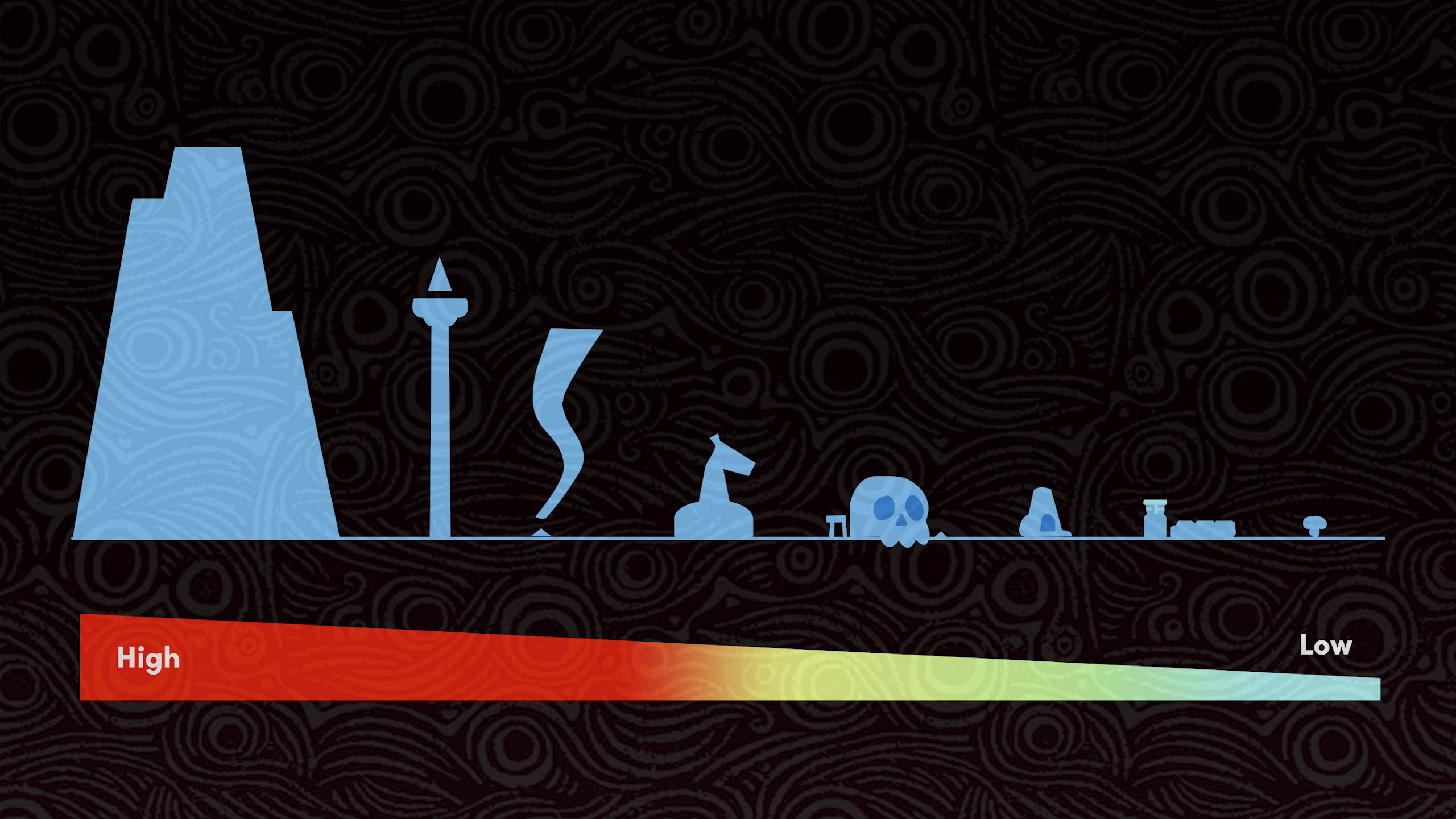 And this has various benefits for the world design. Like, whenever you face a giant mountain, players have to decide whether to scale it, or go around it - creating decision making during exploration. Also, the player's eye is naturally guided to the tip of the triangle - so you can place points of interest at the peek to draw the player closer.