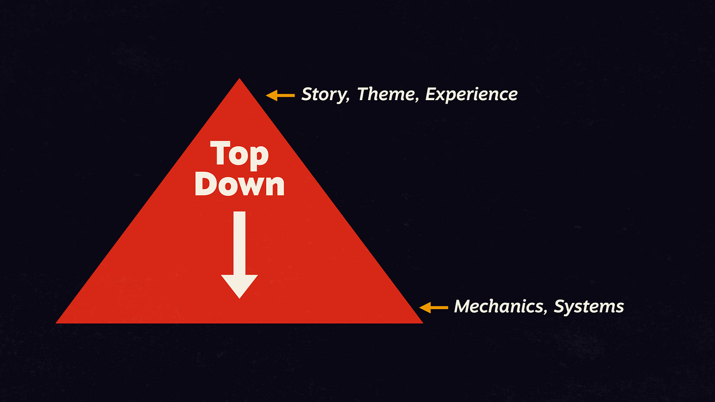 But if there's bottom up, there must also be top-down. And so, yeah, that's also a way to make a game - to start with the experience and then pick game mechanics that will fit.