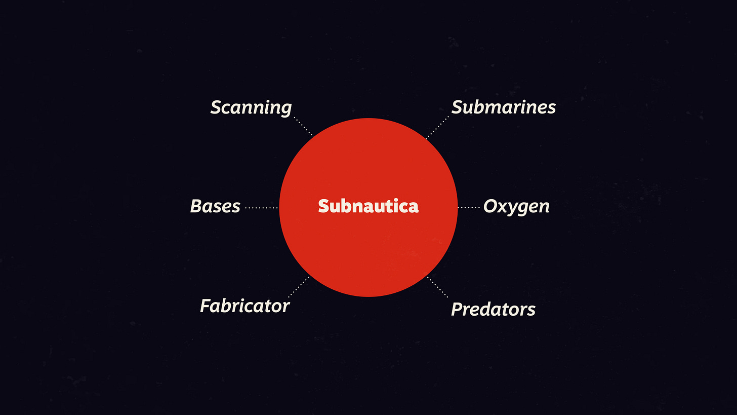 For instance, we could take a game and move it into another perspective - like how Satisfactory began with the idea to move Factorio into first-person. Or we could shift a game into a different theme or context - like how Subnautica's initial pitch was Minecraft, but underwater.