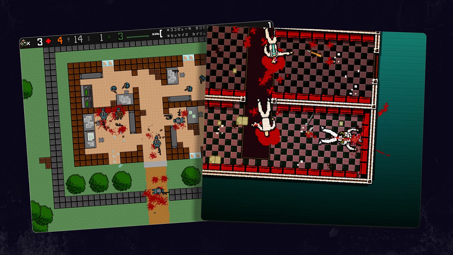 But when Jonatan teamed up with the musician and artist Dennis Wedin, Wedin saw that unfinished prototype and wanted to make it into a full game. And he was able to filter it through his unique vibe, vision, and set of influences - which lead to Hotline Miami.