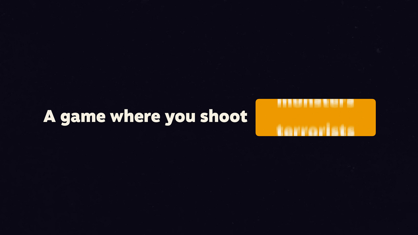 You could also take the mechanics of an existing genre, but swap out the metaphor, to make something completely new. For example, first-person shooters are basically about lining up your crosshair with a target. And for most of gaming's history we've used the exact same metaphor - guns and enemies.