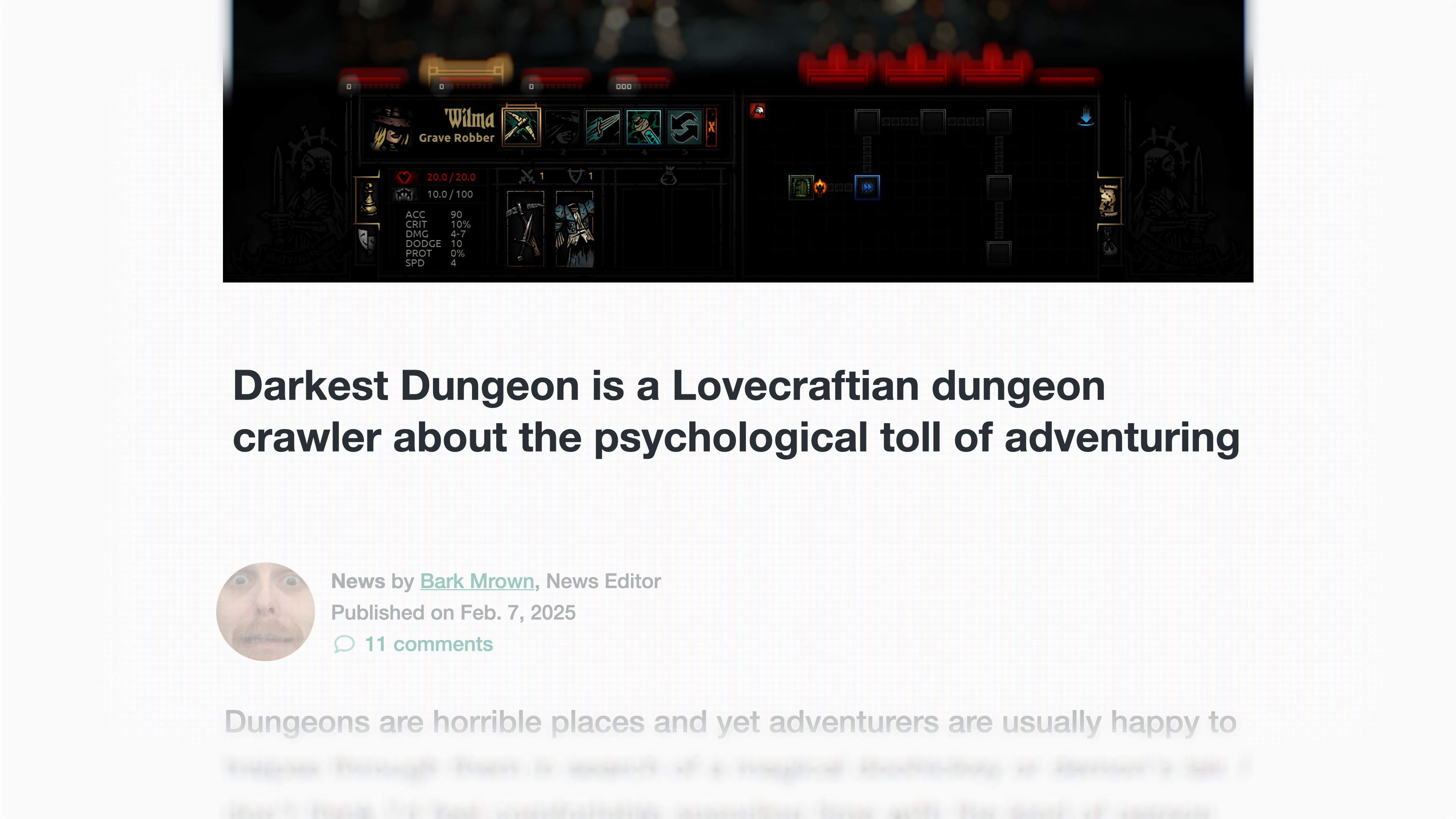 "Darkest Dungeon is a new dungeon crawler".
